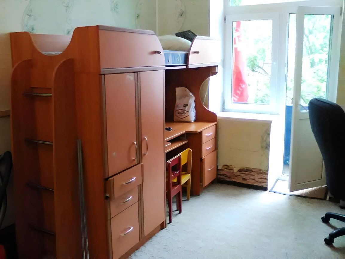 Комната с балконом, очень светлая и тёплая, правильной формы. Вид из окна в тихий, зелёный двор. В комнате остаётся очень вместительный встроенный шкаф-купэ на всю высоту, остальная мебель при необходимости будет вывезена. Ремонт хороший. Санузел раздельный. Соседи - приличные, работающие.