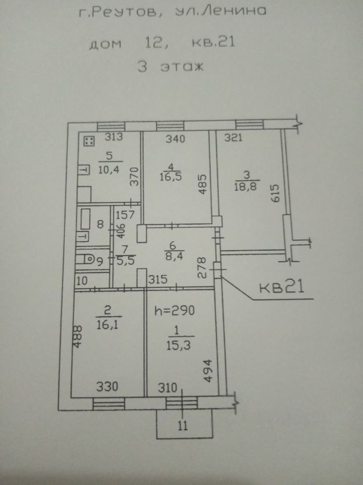 Квартира расположена в сталинском кирпичном доме в центре г. Реутов, 3 й этаж без лифта. Высота потолков 3,2 метров.