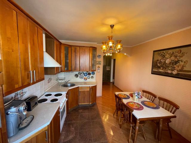 Продается 3-х комнатная двухсторонняя квартира. Все комнаты изолированные, два санузла (ванная комната с водонагревателем и гостевой с/у). Окна ПВХ, две лоджии остеклены. Квартира полностью оснащена мебелью и техникой, входит в стоимость. Ремонт классический.